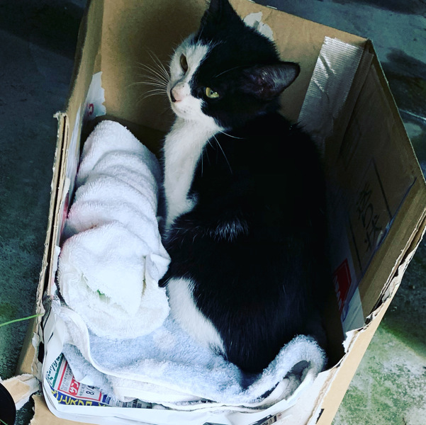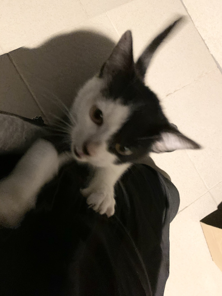| 特徴(性格など) | 毛色:黒、白 年齢:大きさ、食事の様子から4〜5か月くらいだと思います。 すごく人馴れしていて、鳴きながらついてくる、おりこうさんです |