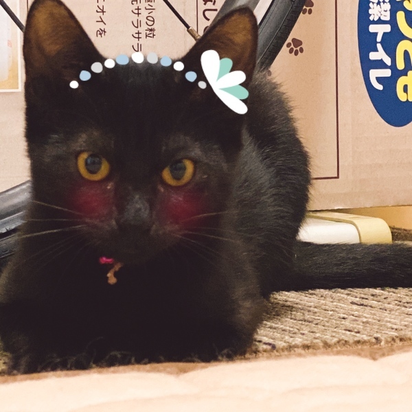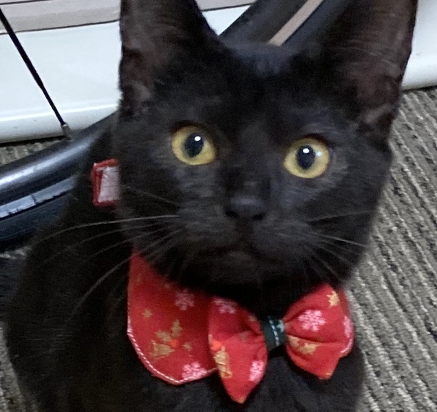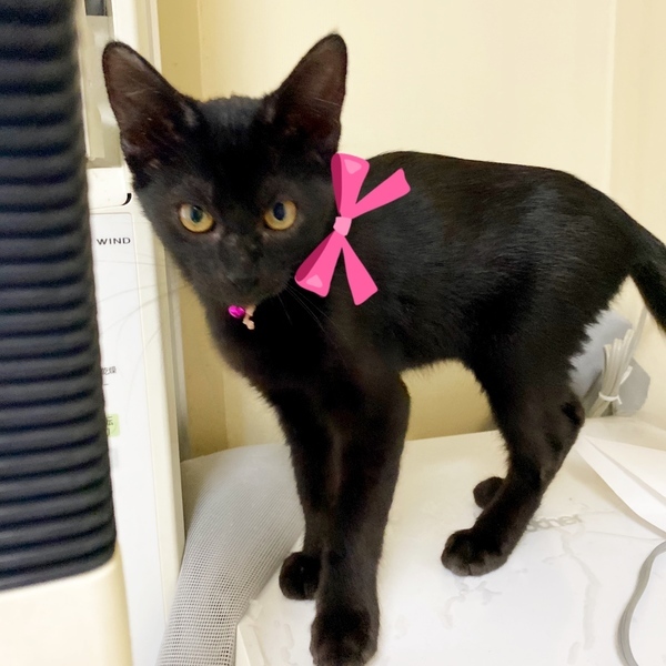 | 特徴(性格など) | つやつやキレイな黒がチャームポイントの女の子。 触ってみると先っちょが鍵シッポなの。幸せどんどん引き寄せちゃうかも? 人を見るとゴロゴロと喉を鳴らす甘えたさん。 紙を丸めて投げるとくわえて持ってきたり、ご飯も決まったところであげてるので誰よりも先にそこで待ってるよ!わんちゃんみたいな猫さんです。 |