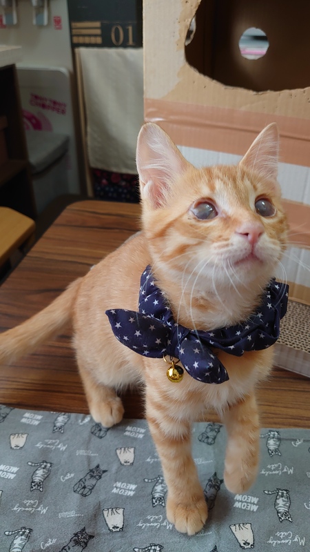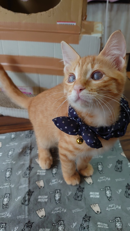 | 特徴(性格など) | ヘルペスの後遺症でほぼ全盲です。 他は検便済み&駆虫済みで健康状態は良好です! 茶トラ柄ですが珍しいメスで三姉妹&母猫ちゃんも茶トラ柄でメスでした◎ 性格は甘えん坊で全盲でも物怖じせず、好奇心旺盛に動き回り、元気に遊びます! 人も動物も怖がりません。 ケージ内にステップをつけたり、キャットタワーは低めのものやスロープのあるもの、音の出るおもちゃで遊んであげるなどの配慮が必要です。 トイレや飲食は場所を変えなければ自分でできます◎ ハンディキャップにご理解のある方よろしくお願いします◎ |