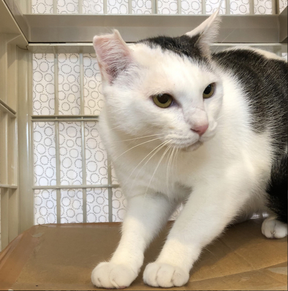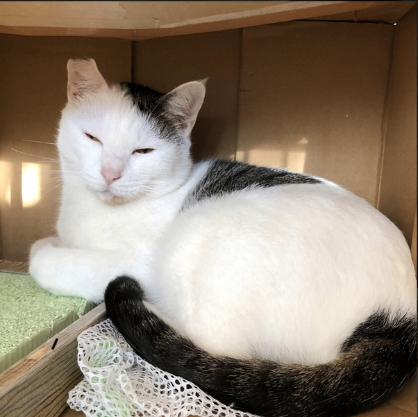 | 特徴(性格など) | 優ちゃん。 個性派柄のキジ白男子。 2020年2月に奄美大島から東京にきました。少しビビリですが、食いしん坊なので食べているときはさわらせてくれます。歯ブラシで頭や耳の後ろをなでると気持ちよさそうにしています。 ずっとのお家で暮らすうちに、今よりももっと人間と仲良くなれそうです。他の猫と遊ぶのが大好きです。他の猫ちゃんと同居する場合は、優ちゃんが動きが速く力が強いので、活発な猫ちゃんが適していると思います。人との遊びは猫じゃらしよりピンポン玉投げごっこが好きです。 尻尾は長いです。目の粗い洗濯ネットに入れば爪切りできます。 トイレトレーニング済み。 去勢済み(耳先カットあり)。 猫エイズ、猫白血病、共に陰性。 駆虫、ワクチン、去勢手術、マイクロチップ装着、他医療ケア済み。 |