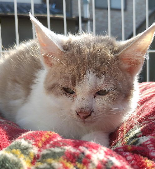 | 特徴(性格など) | 仮愛称:「キュー」ちゃんと名付けました。 月数:生後2ヶ月頃 性別:オス 性格:とても人なつこい甘えん坊くんです。人が大好きな子猫です。 医療面:健診済み・フロントライン済み その他:保護時は猫風邪でしたが、すっかり元気になり完治しています。 |