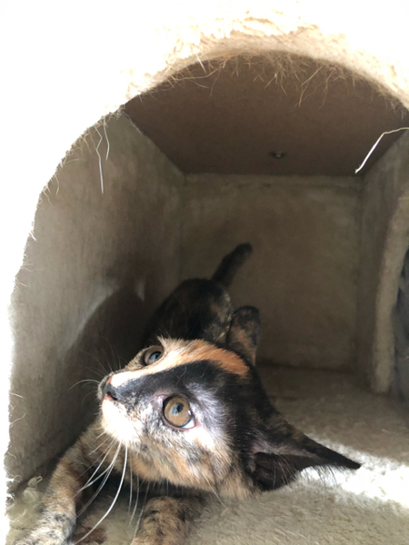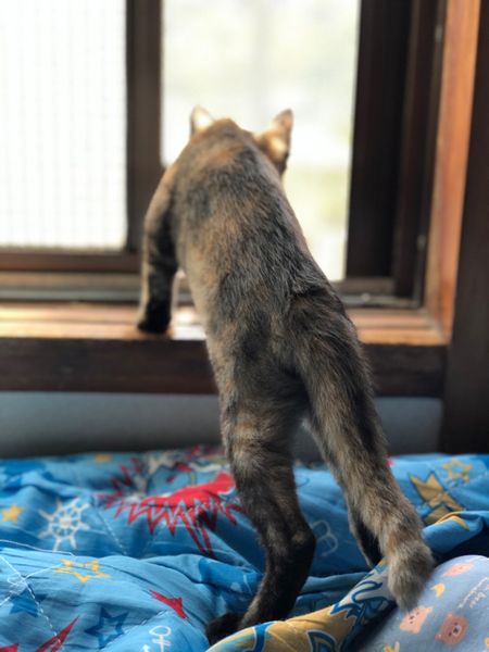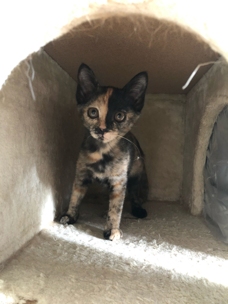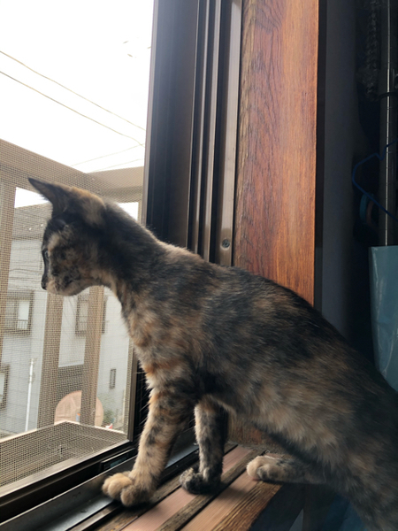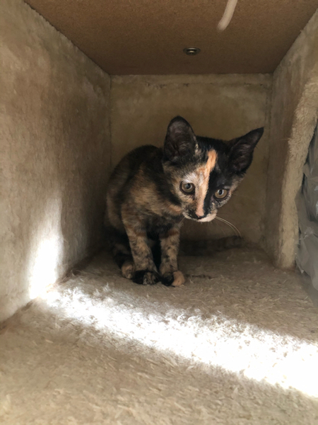 | 特徴(性格など) | 仮名「まいちゃん」 ワクチン済み、駆虫済み、ウイルス検査白血病、エイズ共に陰性 サビの女の子 乳飲み子から育てたので人馴れは全く問題ありません。 兄妹で唯一女の子ですが男の子に負けないくらい元気です。 甘えん坊ですぐにゴロゴロ言っちゃいます。 赤ちゃんの時から兄妹でいるので兄妹または当会の月齢が近い子とお迎えしていただけると寂しくないと思います。 |