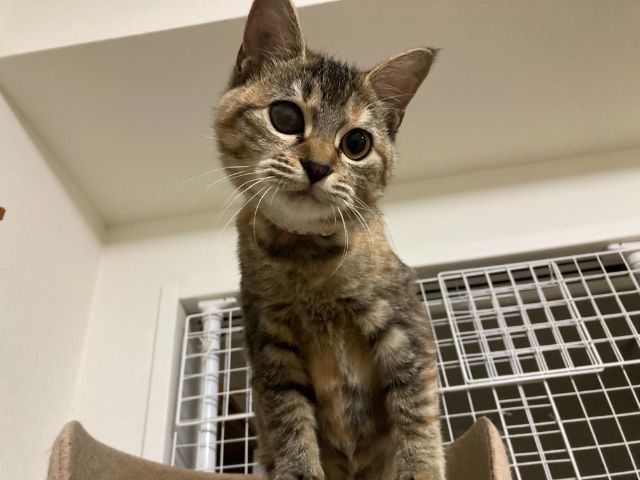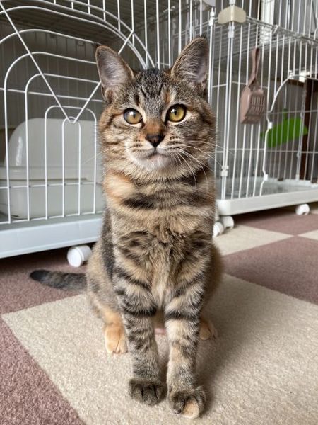 | 特徴(性格など) | ☆☆☆ご希望の方は、以下のアンケートフォームにご記入の上、送信してください☆☆☆ ねこ親希望アンケート→ http://chibawan.net/contactform_cat 【猫No】 3201 【愛称】 ちぐさ 【性別】 メス 【年齢】 推定5ヶ月(20/11/3現在)(2020/6頃生) 【毛色】 キジ 【体重】 2.75kg(20/11/3現在) 【状態】 ワクチン接種済(20/11/1)、血液検査(エイズ(-)・白血病(-))、ノミダニ駆除済、トイレ習得済、不妊手術済、マイクロチップ登録済、真菌症・肺炎治療済 【保護場所】千葉市 【日記】 http://sakuranouchi.blog.fc2.com/ さくらのおうち https://www.instagram.com/sakuranouchi/ Instagram 【経緯】 千葉県動物愛護センターより引き出し 【性格】 とても甘えん坊で「撫でて〜」と頭を擦り付けてきたり、抱っこをせがんだり、愛くるしい女の子です。他猫とも上手に付き合うことができ、保護宅では成猫を相手に甘えたり遊びを仕掛けたり一緒に仲良く過ごしていますが、嫌がる相手にはちゃんと距離を保つことができます。仔猫ですが、落ち着きもあって甘え上手なので、成猫からも可愛がられる愛されキャラです。お留守番も悪戯することもなくお利口に過ごすことができます。人懐っこくて場所見知りなどもないので、猫の飼育初心者の方でも飼い易いタイプだと思います。 甘えん坊で誰かと常に一緒に過ごしているので、お留守番の少ないご家庭、甘えたり遊んだりすることができる先住猫のいるご家庭が向いていると思います。 保護宅での日常の様子はInstagramでご紹介しておりますので、ぜひ一度覗いてみて下さい。 【補足事項】保護時に重度の肺炎を患っていましたが、現在は治療を終えており、今後も特に治療は必要はありません。また、猫風邪の後遺症で右目にうっすら白濁がみられますが、視力に問題なく、特に治療は必要ありません。 【その他】猫に合った生活スタイル、終生飼養、完全室内飼育、脱走防止対策、定期的なワクチン接種などの健康管理、定期的な近況報告をお約束いただけるご家族で、アンケートに快くお答え頂ける方からのお問い合わせをお待ちしております。お届けの範囲は、猫の負担を考慮して千葉市から車で90分程度の範囲を希望します。 |