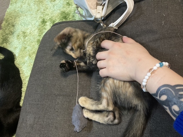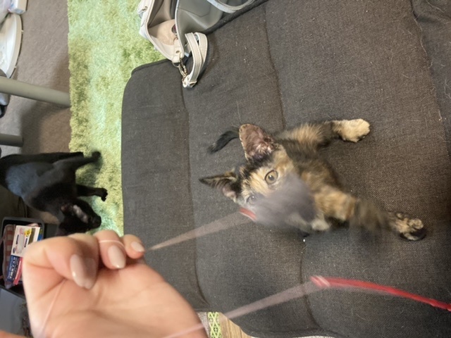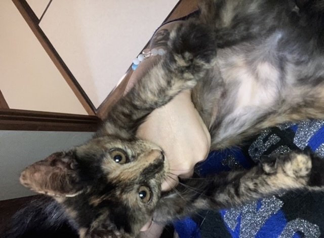 | 特徴(性格など) | サビ猫でしっぽが長い女の子です! 性格は甘えん坊で抱っこすると腕の中で寝ます! 遊びたい盛りで猫じゃらしが大好きです! 人見知りもなく初日にすぐに慣れると思います! |