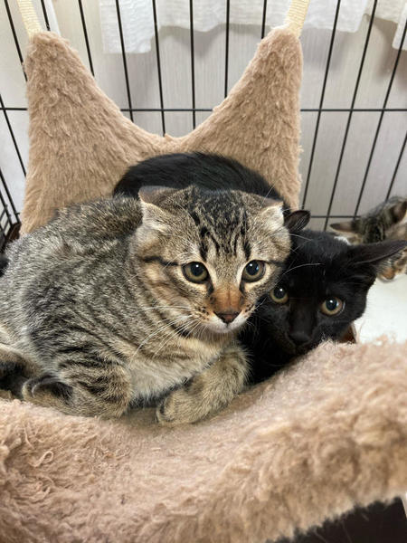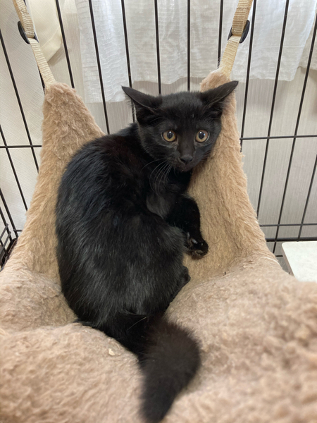 | 特徴(性格など) | 去勢or避妊済みの子猫4キョウダイ ※因みに今回の撮影は納得が出来ません!私(代表)が撮影するとイカ耳になってしまいます(笑)だから実物はこの写真の100倍かわいいのですよ・・・捕獲したのが私だからこの子達は私の事が大嫌いなのです(´;ω;`) この子達の様子はYouTubeをご覧くださるとわかりやすいと思います。先に保護されたのがトロイくんと言って、保護当初の動画もYouTubeにあがってます『死んだフリをする子猫』です(笑)他の3匹のキョウダイ達は後に保護されました。 https://youtu.be/jdHbnAP2Qm4 【性格】超絶美猫の黒猫のメスちゃんです。 4キョウダイでオス組はへたれんちょですが、メス組はツンデレです。 またそのツンデレ感がメス好きには堪らないと思います。 シャー!は挨拶がわりで、一切、猫パンチや噛み付きなどございません。 ビビリではありますが、慣れて心を開いてくれば勝手にきままに過ごしてちゅーるがあれば喜びます。人より猫の方が好きなタイプです。 もっと慣れてくれば甘えん坊になるかも? まだまだ甘え下手な子です。 固まってますが、抱っこもできます。 避妊手術をしてからお届けなので、お仕事をお持ちのご家庭でもお迎えしていただけます。 詳しくはスタッフまでご相談ください。 キョウダイ一緒にお迎えくださる方が優先となります。 カケルくんと仲良しなので、カケルくんと一緒にお迎えする事をオススメします。 |