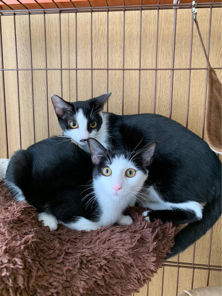 | 特徴(性格など) | ツンデレ姉妹のかわいい黒白ちゃん達 【性格】チャームポイントは、おかっぱのパッツン前髪が堪らなくかわいいプイちゃんです。 女の子です。 まだビクビクしてしまいますが、噛んだりパンチなどの攻撃性はなしです。 ナデナデ触らせてくれます。 まだ、どうやって人に甘えていいか?がわからずに甘え方下手です。 時間をかけてゆっくり仲良くなっていただけたらと思います。 同じく一緒に譲渡会に出場するピーちゃんとは姉妹です。 ピーちゃんよりは、プイちゃんの方が人馴れしています。 もう避妊手術を終えているので、お仕事をお持ちのご家族でも問題なくお迎えしていだだけます。 |