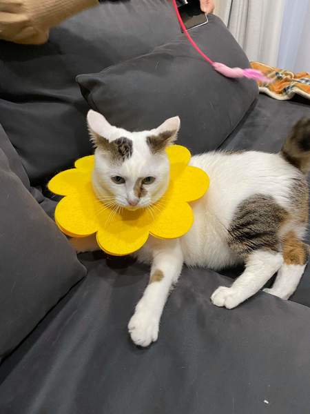 | 譲渡費用(医療費、交通費など) | 現在、原因がストレスでなめ壊してしまっているので、フェルトのエリザベスカラーをつけながら、二週間に一度感染症予防のための抗生剤を打っています。完治するまで、抗生剤の投与は引き続きお願いいたします。抗生剤自体は一回につき2000円から3000円くらいです。 | ||