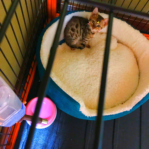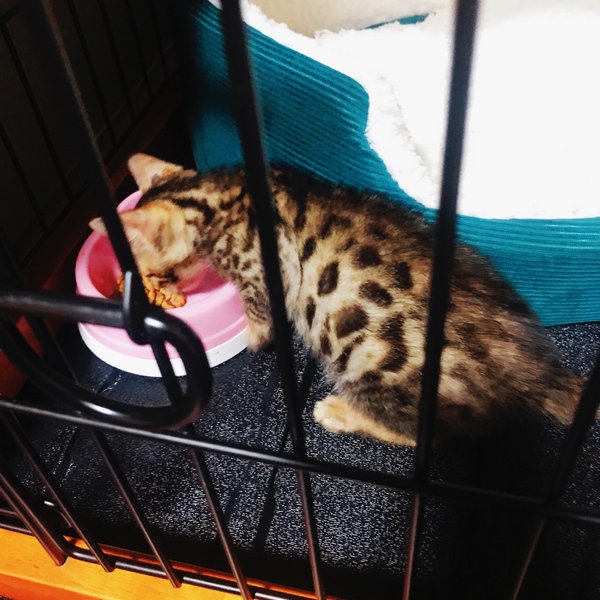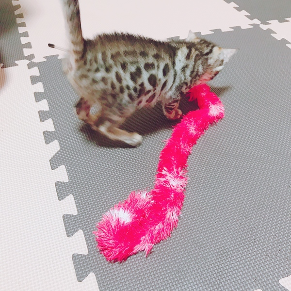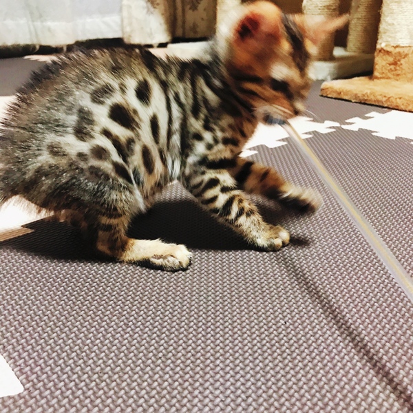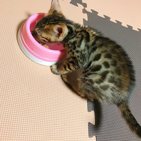| 特徴(性格など) | 初めて会った時はビビりっ子でしたが 数時間で慣れるととっても甘えん坊な性格で 人を見るだけで喉をゴロゴロ鳴らしお腹を出したり身体中を使ってスリスリして来たり 膝の上でくつろいだりとても甘えん坊で可愛らしい子です。 遊びも大好きで猫じゃらしでとてもはしゃぎます。 まだとても身体が小さいですが、大きくなるにつれ綺麗な模様や色味に変化してくると思います。 |