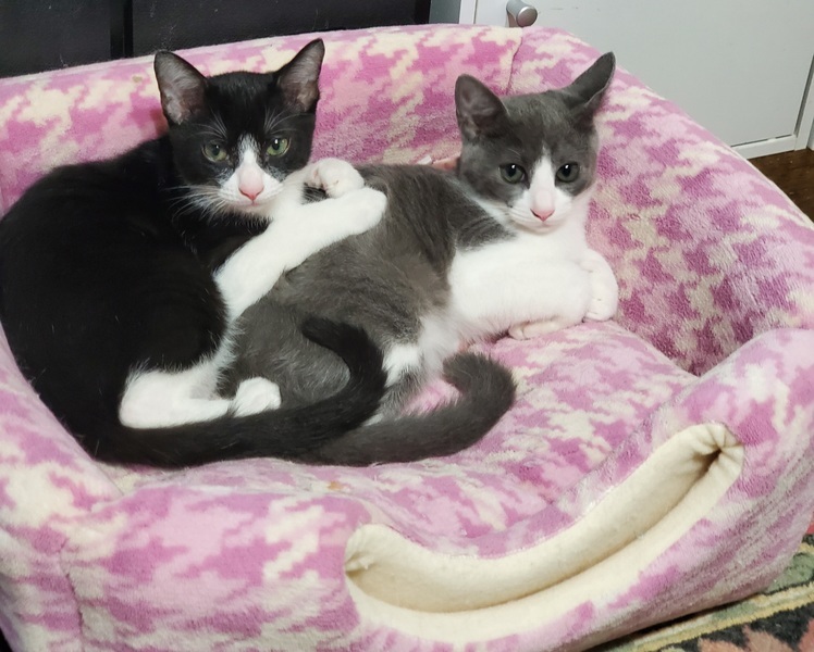 | 特徴(性格など) | 灰色のハチワレと黒のハチワレのとっても仲良しな兄弟です。 人見知りで臆病ですが、遊ぶことが大好きなやんちゃな子達です。 |