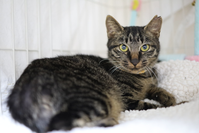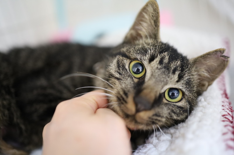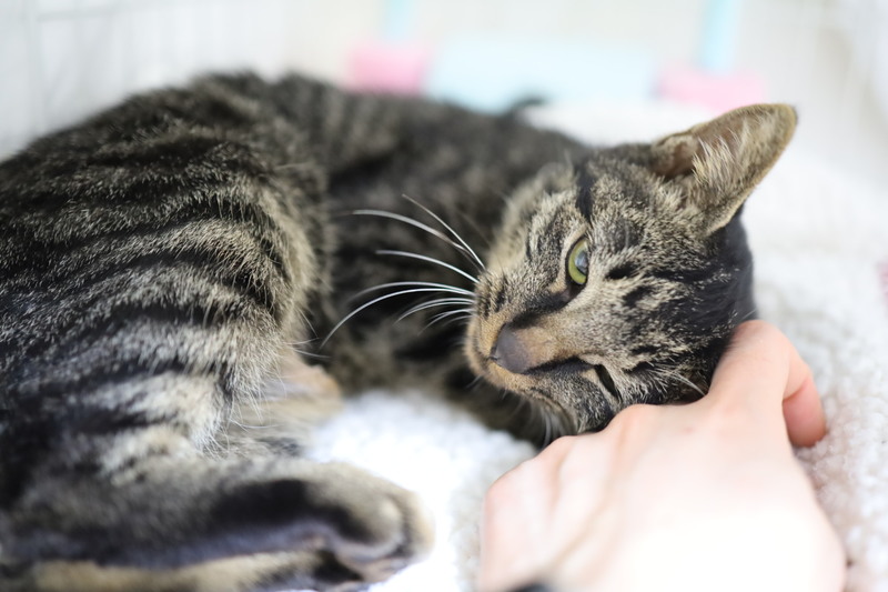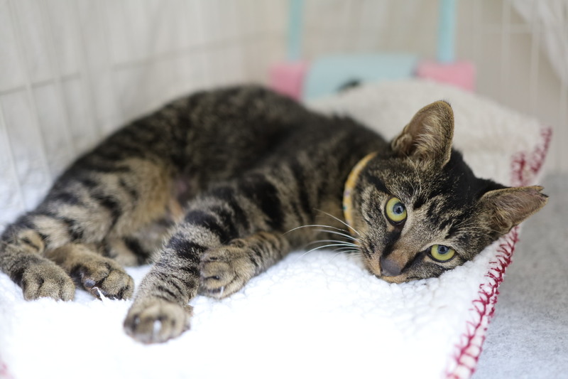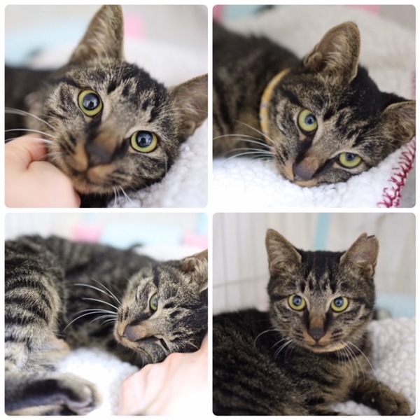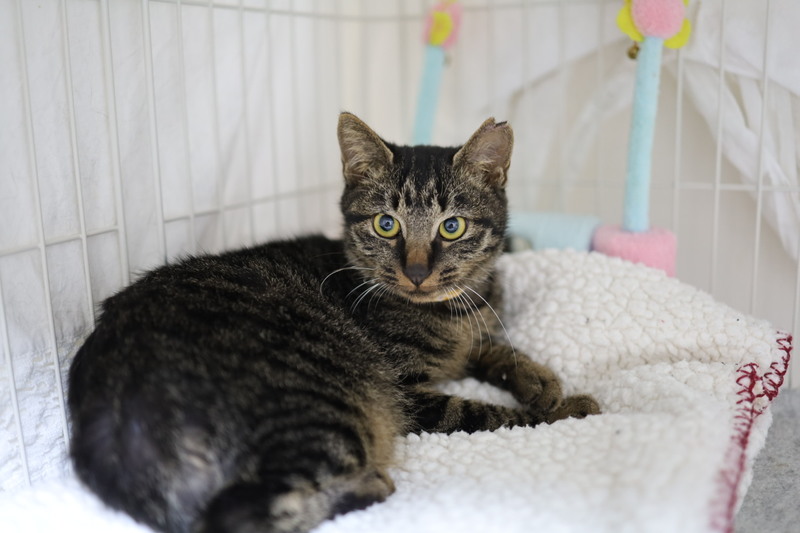 | 特徴(性格など) | 名前:お多未ちゃん 保護日:10月26日 年齢:生後4ヵ月(6月25日生まれ) 色柄:キジトラ 尻尾:短い尻尾 性格:保護宅ではゴロゴロ、スリスリ、フミフミ。男顔ですが、おとなしくて穏やかな女の子。術後療養を終えまだ1匹でケージで過ごしています。トイレの失敗もありません。 保護時体重:2.0㎏ ワクチン:初回接種済 避妊手術:済 血液ウィルス検査:猫エイズ・猫白血病共に陰性 |