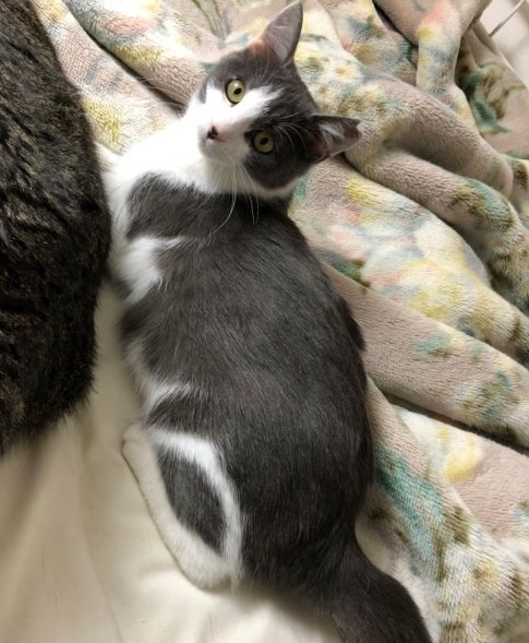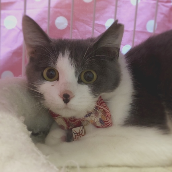 | 特徴(性格など) | 名前:エル・ポコ 保護日:10月14日 年齢:生後4ヵ月(6月15日生まれ) 色柄:白×グレー 尻尾:やや短め 性格:少し怖がりで恥ずかしがり屋ですが、信用した相手(人・猫)にはゴロゴロスリスリでべったり甘えます。ひとりでおもちゃで遊び、手のかからない子です。トイレの失敗もありません。 保護時体重:2.0㎏ ワクチン:初回接種済 避妊手術:済 血液ウィルス検査:猫エイズ・猫白血病共に陰性 |