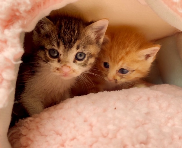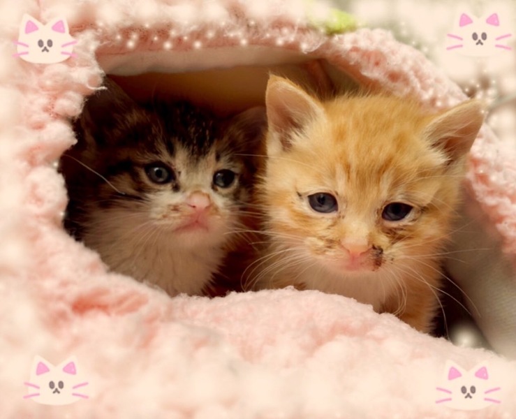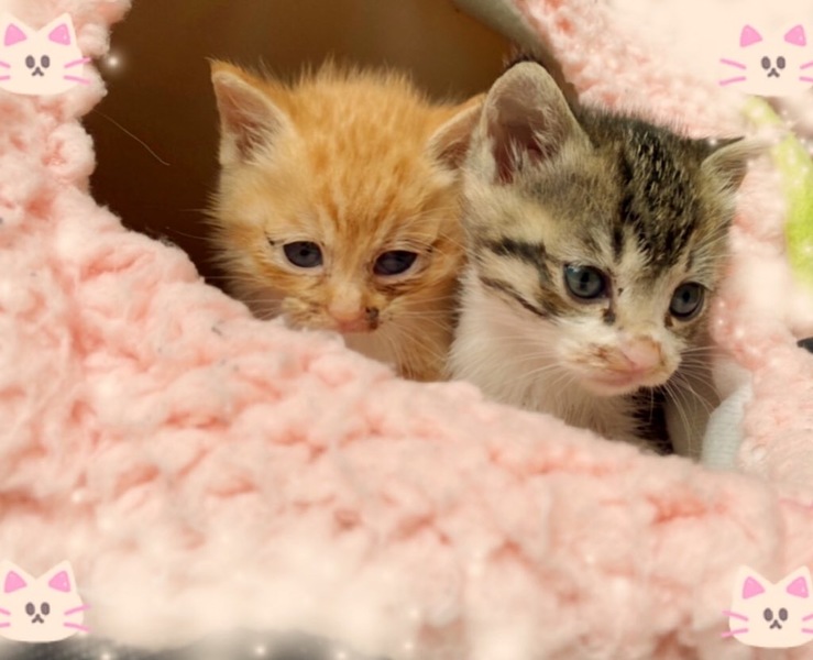 | 特徴(性格など) | 三毛キジ柄→ちひろちゃん(仮名) 白茶トラ柄→ラムちゃん(仮名) ほとんどが茶トラ柄で足先が白です。 2匹♀ともしっぽは長く人馴れしてます。 |