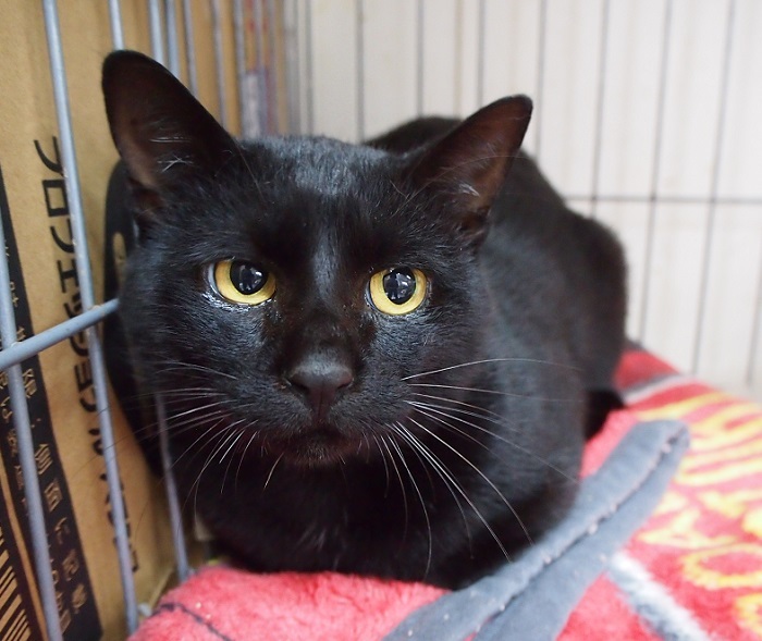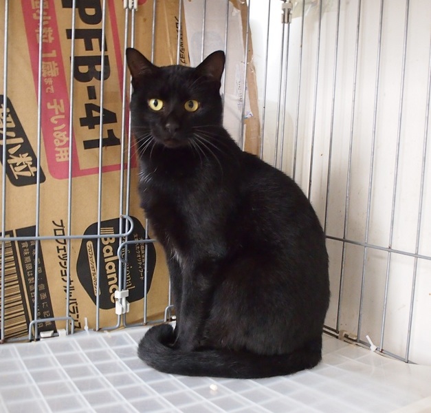 | 特徴(性格など) | ゴロスリさんです。 ビロードのような、とても綺麗な黒猫さんです。 尻尾は長いです。 健康状態良好 ウイルスチェック(エイズ・白血病)はマイナスでした。 |
