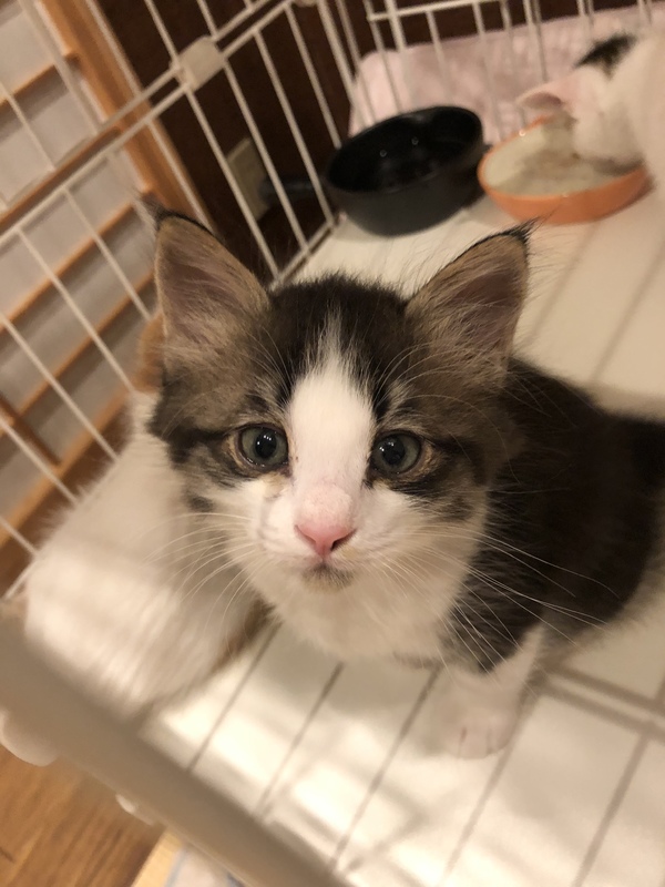 | 特徴(性格など) | 薄い黒の虎柄、お顔や脚に白も入った可愛い男の子です。 とてもやんちゃですが、人懐っこい子です。 ウィルス検査は白血病、エイズウィルス共に陰性でした。 すぐに膝の上に上がりたがる本当に甘えん坊な可愛い子です。 |