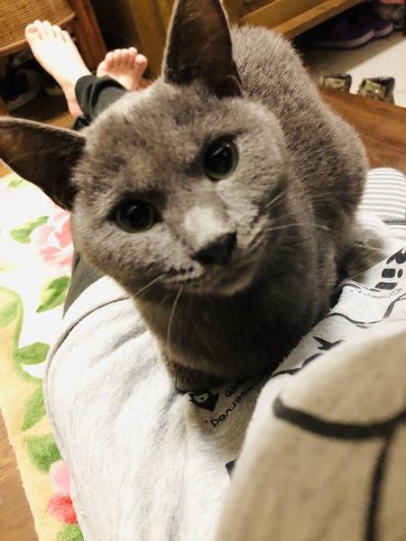 | 特徴(性格など) | ロシアンブルーの様なキレイな男の子です。 凄く人懐っこくて膝の上に乗るのが大好きです。 寂しがり屋な所もあり、後ろをついて歩きます。 |