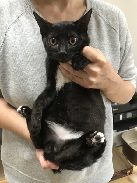 | 特徴(性格など) | 食欲旺盛、ヤンチャな男の子です。 兄弟猫ととても仲が良く毎日元気にじゃれあって遊んでいます。 お膝の上も大好きで撫でる前からがゴロゴロ甘えます。珍しくお風呂も好きな可愛い黒猫くんです。 |