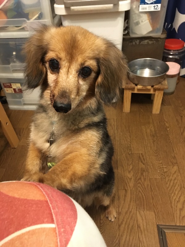 | 特徴(性格など) | 【愛称】コロ助 【犬種】M.ダックス系ミックス 【性別】オス(去勢手術済) 【年齢】推定10歳 【毛色】茶、黒 【体重】4.4㎏ 【状態】ノミダニ駆除済、駆虫済、混合ワクチン・狂犬病予防接種済、マイクロチップ装着済、フィラリア(-)、重度の歯周病により右下奥の臼歯1本を残し抜歯済み、心雑音あり 【人馴】人が好きです 【預かり場所】千葉県市川市 【日記】 mari_mali0718 (インスタグラム) https://www.instagram.com/mari_mali0718/ 【性格・特徴】 人が大好き、甘えんぼうでお目めクリクリのとてもかわいらしい男の子。 人のそばにちょこんと座ったり、トテトテ付いてきて目が合うとクリクリお目めをキラキラ輝かせ、 しっぽフリフリで嬉しそうに見つめてきたりと、思わず「かわいい〜!」と 呟いてしまわずにはいられない愛らしさです。 預かり当初は他犬に唸ったり吠えたりしてしまうことがありましたが、きちんといけないことだと 教え現在はほぼ吠えはなくなりました。 吠えそうになっても「ノーだよ」と言い聞かせるときちんとガマンしてくれます。 とあるグラウンドにキャリーに入れられたまま置き去りにされセンターに収容されたことから、 人に飼われていて故意に捨てられたことは確かなようです。 何年も一緒に暮らした人に見捨てられてもなお人の言うことをちゃんと理解し、 従おうとする健気な姿に、もう二度と辛く悲しい思いをせず、優しいご家族のもとで 終生幸せに暮らしてほしいと願わずにはいられません。 現在預かり宅では就寝時とお留守番時はクレートで過ごしていますが、 たまに鼻鳴きする程度でうるさく吠えることはありません。 トイレは現在1日2回のお散歩時にさせています。 たまに室内のトイレシートでおしっこのみすることがあります。 咳などの症状はありませんが心雑音があります。 また、重度の歯周病により殆どの歯がグラグラしていた為根元が悪くなっている歯は抜歯しました。 ドライフードや小さめにちぎったオヤツなどは普通に食べることができます。 シニアの域に達していると思われますが、嬉しい時にははしゃいだり、 お散歩時も元気よく楽しそうに歩きます。 普段室内ではまったりと大人しく過ごしていますが、時には預かり宅の仔猫と 遊ぼうとしたりボールを追いかけたりとまだまだ元気でお茶目なおじいちゃんです。 人に従順でどんな時も人の声が届く良い子です。 人間の子どもへの攻撃性も一切なく仲良くすることができます。 日々の様子はインスタグラムに随時記していますので是非ご覧下さい。 引き続き完全室内飼育で長時間のお留守番がなく定期的なワクチン接種、 フィラリア予防などの健康管理、脱走・逸走防止のための努力と近況のお知らせ、 以上を必ずお約束していただける関東圏内のご家庭で、終生家族の一員として愛情を 注ぎ大切にしてくださる方からのお問い合わせを心よりお待ちしています。 【お申し込み】 直接 いぬ助けのHPの「コロ助」のページよりお申し込みください。 → https://www.inudasuke.com → いぬの里親さん募集 → 「コロ助」のページより 内容をご確認の上、アンケートを送って下さい。 (こちらのサイトのアンケートですとお時間を頂く場合がございます。 直接いぬ助けのHPよりお願いします。) |