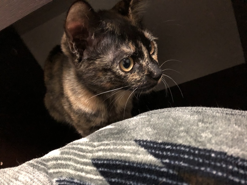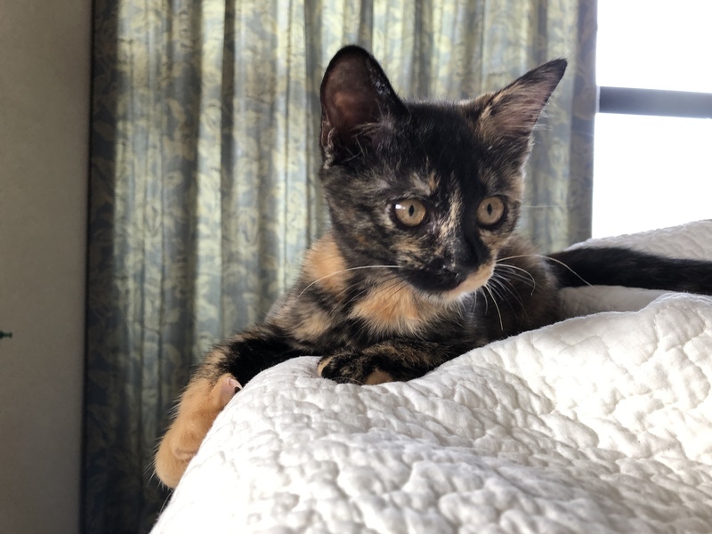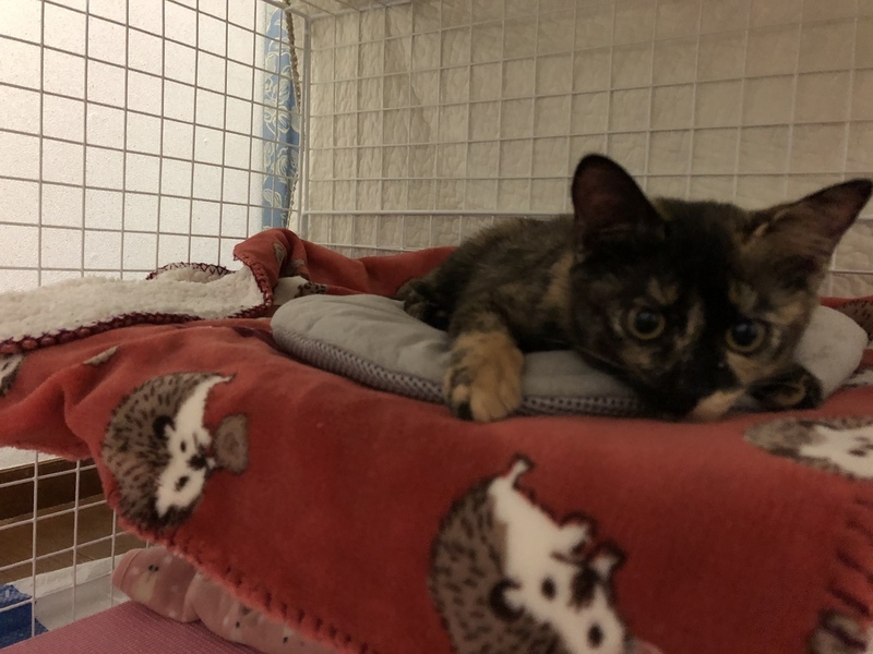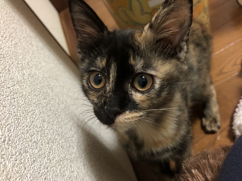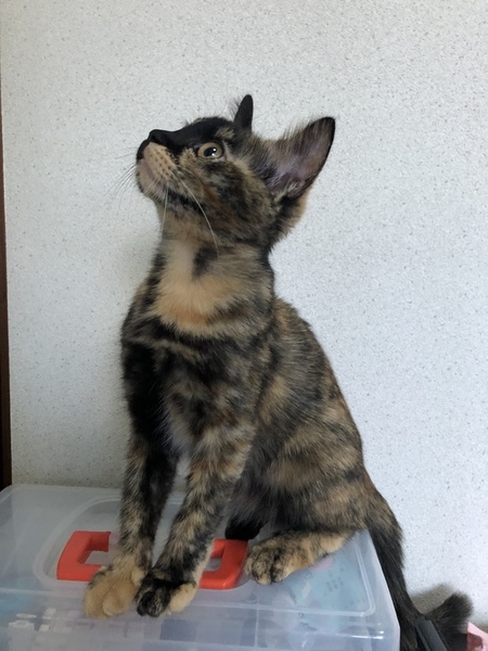 | 特徴(性格など) | 雑種のサビ柄の女の子です。 元気旺盛、おもちゃで遊ぶの大好きです! 人にも興味津々で慣れるとゴロゴロスリスリ、お膝にも乗ってきます★ ・ノミダニ取り、駆虫済み ・ウイルス検査白血病、猫エイズともに陰性 ・5種混合ワクチン2回接種済み |