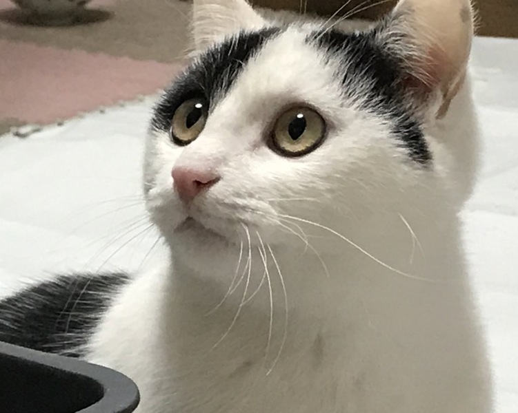 | 特徴(性格など) | 名前:大福(ダイフク) 色柄:白黒のブチ 性格:遊ぶのが大好きで、毎日ボールを追いかけたり猫じゃらしで遊んだりしています。食欲旺盛で、お腹が空くと鳴いてエサを要求してきます。 臆病で、大きな音が苦手です。 Twitterで毎日の様子を発信中です(*`ω´*) @anone_eyedgirl |