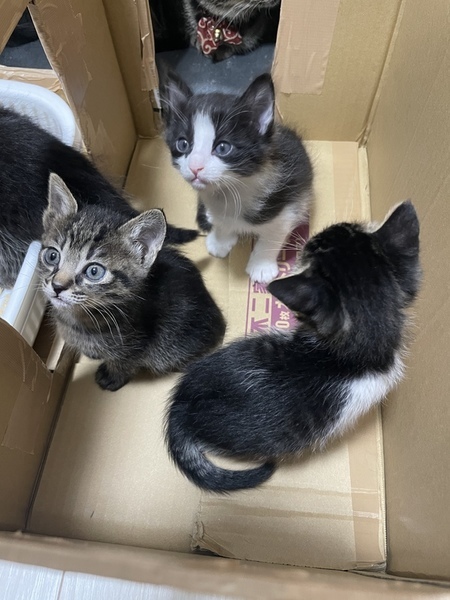 | 特徴(性格など) | ◇キジトラ柄の女の子 キャットタワー登ったり猫じゃらしで遊んだりと活発で元気な女の子です。 ◇キジトラ柄の男の子(長毛) にゃーにゃーと甘えん坊さんです。 座ったまま寝る時が多々あります笑 ◇キジトラ柄の男の子(長毛) 元気で毎日おもちゃで沢山遊んでます。 猫ちゃんならではのイタズラ好きで 活発な男の子です。 ◇黒白柄の男の子(長毛) 凄く甘えん坊さんです。 遊んで〜と足につかまってきます。 |