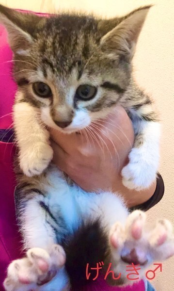| 特徴(性格など) | ■特徴(仮の名前:げんき) キジシロ 推定2.5ヶ月 体重900g ■性格・暮らし ・普段はケージの中で生活しています。 ・ケージでの就寝、お留守番が出来ます。 ・子猫の為、お留守番が少ないご家庭。 ・中心となってお世話する方が60歳以下、2人以上のご家庭。 ・1年以内に去勢手術をし、証明書を提出していただける方。 ・兄妹2頭(げんき&こうめ)で譲渡可能な方。 ■今までに行った医療行為 ・混合ワクチン11月11日一回目 ・マイクロチップ装着 ・猫エイズ猫白血病検査(陰性) ・ノミダニ体内寄生虫駆除薬(ブロードライン)塗布 ・駆虫薬投与 ■今後行う予定の医療行為 ・混合ワクチン ・去勢手術 |