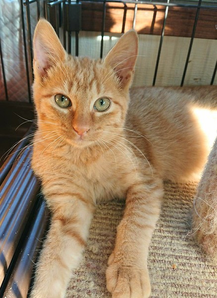 | 特徴(性格など) | 撫で撫でとおもちゃが大好きな元気で甘えん坊の男の子です。 背中に入った3ヵ所の白いメッシュがチャームポイント。 ・去勢手術済み ・ウイルス検査陰性 ・3種混合ワクチン2回接種 ・便検査、駆虫済み |
