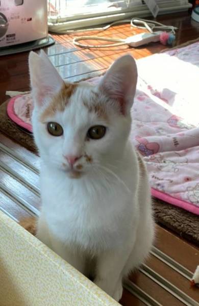 | 特徴(性格など) | ちょっぴりビビりな甘えん坊。 撫でるとすぐにゴロゴロ言います。 鼻の下の模様がチャームポイントの可愛い男の子です。 |