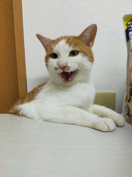 | 特徴(性格など) | 白茶の柄です。 とても人懐っこく、撫でられるのが好きです。 撫でるとすぐに喉を鳴らします。 甘がみが上手です。 |