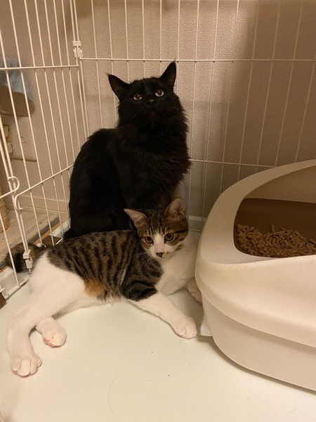 | 特徴(性格など) | 2016.9.14生まれ(推定) 毛色:黒 長毛 長い毛並みがとてもゴージャスな黒猫 福ちゃん。 子猫が大好きで、一緒に里親募集中のうらちゃんをグルーミングしたりしてお世話をしてくれる面倒見の良いお兄ちゃん。 人馴れはもう一歩のところですが、猫は大好き。 食いしん坊で、食べる事も大好き。 チュールは人の手から舐める事が出来ます。 ゆっくりと優しく長い目で見てくださるお家を探しています。 |