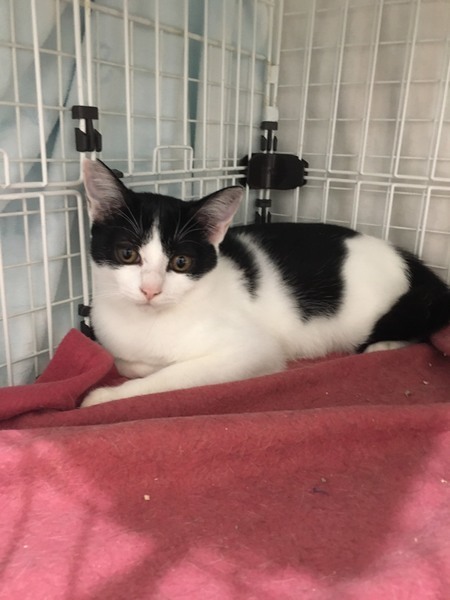 | 特徴(性格など) | シロクロハチワレ★ おっとり大人しい子ですが、遊ぶの大好き!好奇心旺盛な子供猫くんです。 ボールを転がすと上手にゴールキーパーをしてくれます♪ |
