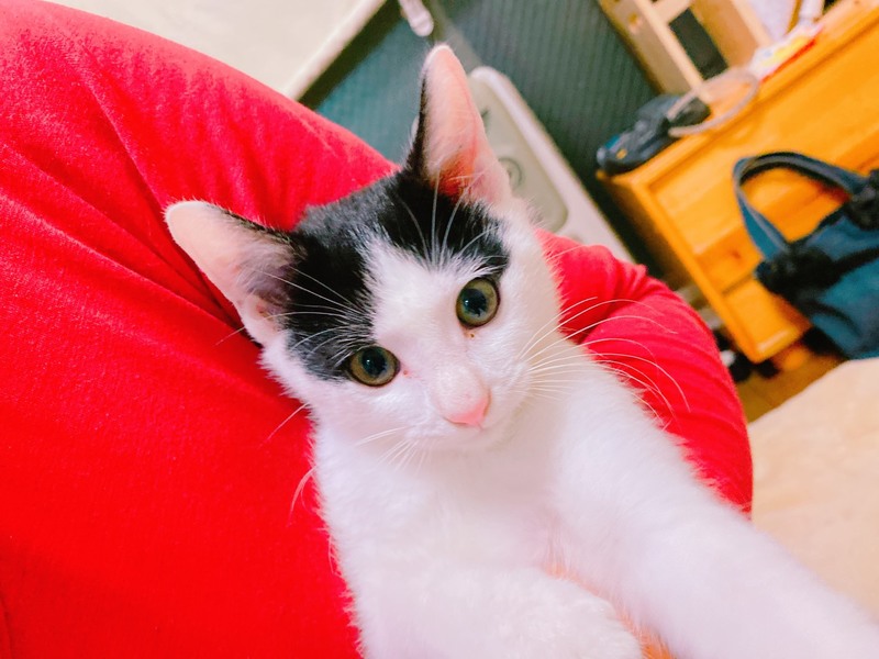 | 特徴(性格など) | 白黒柄。 慣れるとすりすりとすり寄ってくる甘えたさんで、顎の下や頭を撫でられるのが大好きです。臆病な所もあるので、慣れるまでは部屋の隅や家具の下などに隠れて出てこないかもしれませんが、根気よく話しかけたりフードを手からあげたりするとすぐに慣れてくれるかと思います。 |