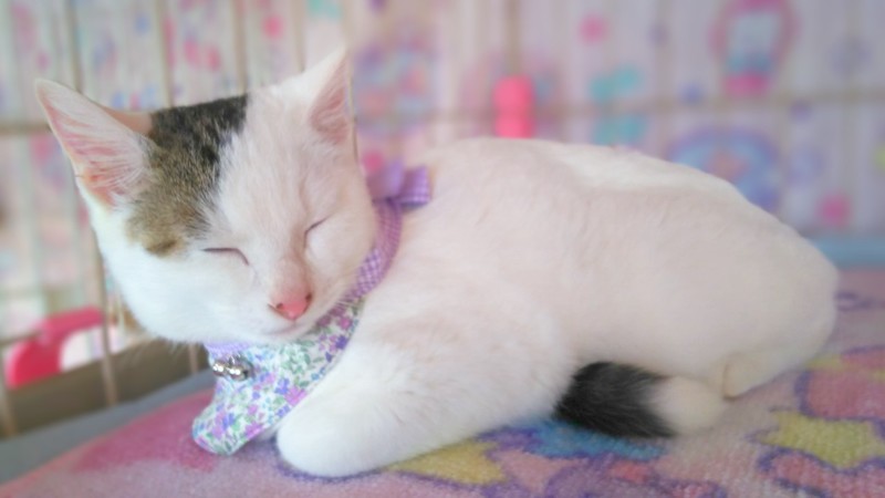 | 特徴(性格など) | 白キジ柄の男の子です。 少し怖がってはいますが、触ったりできます。 朝と夕方はおしゃべりしながら甘えてくれます。 穏やかな子です。 現在みどりくんの兄妹や多数の猫ちゃんを保護しています。 是非見に来て、触れ合って下さい。 |