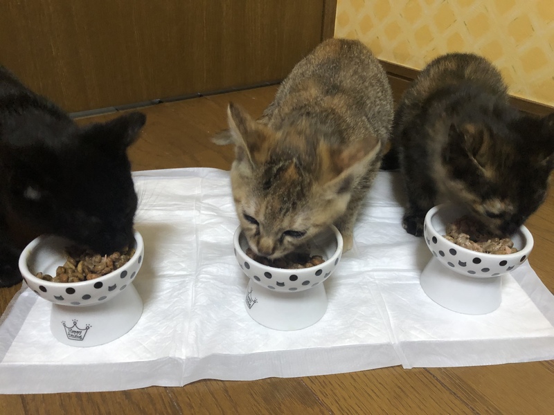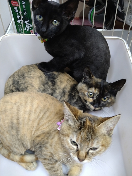 | 里親募集する理由 | 三兄妹で保護しました。 麦わらの女の子 サビ柄の女の子 黒柄の男の子がいます。 お母さんはTNRしました。 餌やりさんが見守ってくれております。 3匹一緒ずっとのおうちが 1番希望なので3匹ともおうちの子になれる方を優先させて頂きます 難しい場合、他にも子猫さんが おりますので お留守番など寂しくないように 子猫さんは 2匹ずつの譲渡でお願いしたいです。 |