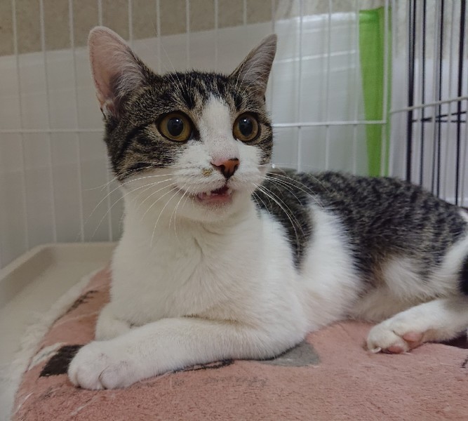 | 里親募集する理由 | とあるお家のお庭に現れ、ご高齢の方が家の中でゴハンをあげていましたが、続けることが難しくなった為保護となりました。 現在、保護部屋で元気に成長中!! |