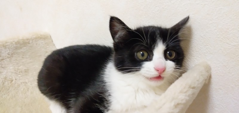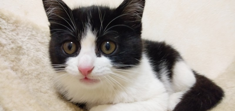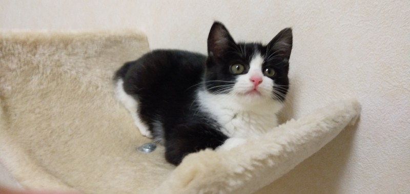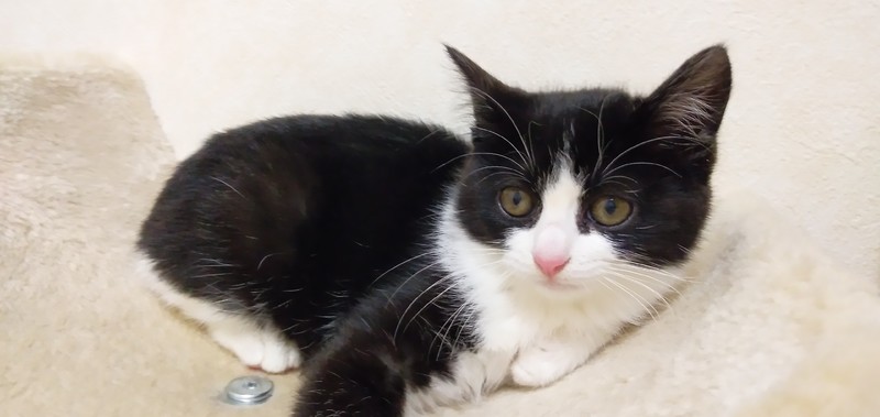 | 特徴(性格など) | 白黒 ハチワレ とても人懐こく、元気いっぱい遊びまわっています。 人の周りをチョロチョロとかまってアピールします。 初心者の方でも飼いやすい仔猫だと思います。 健康状態良好 ノミダニ駆除、駆虫済 ワクチン1回目接種済 |
