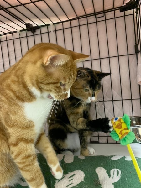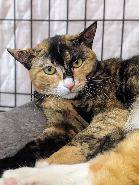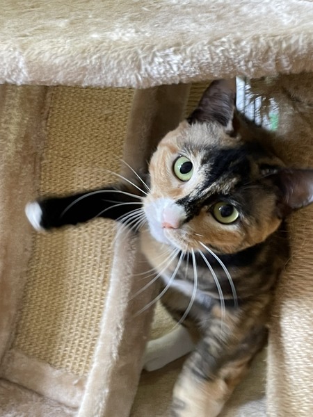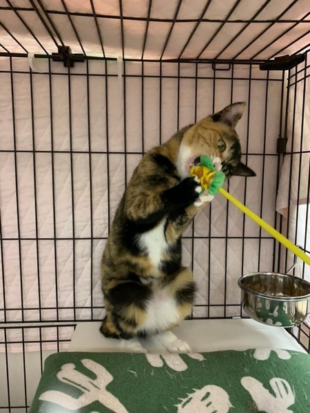 | 特徴(性格など) | 2018.10.31(推定) 毛色:三毛 幸せのカギしっぽ持ちの三毛猫こまち♀ 明るめの茶色多めの美猫さんです♡ ピンクのお鼻にお口周りの淡い色合い、白靴下が可愛らしい女の子。 とっても怖がりさんなので、いつも兄妹猫の利平♂を盾にして隠れています。 まだ人が近づくとイカ耳状態になってしまうけど、手やスプーンからのおやつはOK!! ナデナデも出来ます♪ 慎重派のこまちをずっと守ってくれるナイトを募集中! |