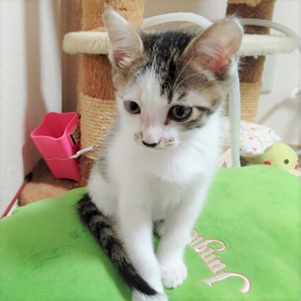| 特徴(性格など) | ☆☆☆ご希望の方は、以下のアンケートフォームにご記入の上、送信してください☆☆☆ ねこ親希望アンケート→ http://chibawan.net/contactform_cat 【猫No】 3205 【愛称】 ムサシ 【性別】 オス 【年齢】 推定2.5ヶ月(20/11/17現在)(20/09初旬生) 【毛色】 キジシロ 【体重】 1.0kg(20/11/17現在) 【状態】 ワクチン1回済(20/11/13)、血液検査(猫エイズ陰性・白血病陰性)、 ノミダニ駆除済、駆虫済、トイレ躾済 【預かり場所】 千葉県船橋市 【日記】 https://www.instagram.com/jasmine81865/ 【経緯】 千葉県動物愛護センターより引き取り 【性格】ミルクから育てていますのでとても人懐こいです。 少しビビりさんですが、人に対しては初対面でもすぐにゴロゴロスリスリになります。 場所の変化には弱いようなので、移動後は隠れたりするかもしれません。 寂しがり屋さんでいつも同居猫や人の側に居たいようです。 ニャンプロしたりおもちゃを追いかけたり同居子猫と一緒に元気に遊びますが、どちらかと言うとおっとりさんです。 お膝に上に乗るのが大好きです。抱っこも嫌がりません。 ケージでお留守番も出来ますし、夜は大人しく寝るお利口さんです。 【補足事項】 ムサシと一緒に兄妹のように育てている子猫(ミケ・メス・2ヶ月・他団体所属)と一緒にお迎えして下さる里親さんを募集します。 詳しくはインスタグラム(https://www.instagram.com/jasmine81865/)をご確認下さい。 寂しがり屋さんなので仲良しの子猫と一緒ならお留守番も寂しくなくて安心です。 恐れ入りますが、1匹のみご希望の方は他の猫ちゃんをご検討下さい。 大変申し訳ございませんが、仔猫のためお一人暮らしやご高齢の方のみのご世帯はお申込みをお断りさせて頂きます。 また長時間お留守をされるご家庭の場合も、条件によってはお申し込みをお断わりさせていただく場合がございます。 ※2匹同時にお迎え下さる方を募集しております。 1匹のみご希望の方は他の猫ちゃんをご検討下さい。 ※お試し生活は、不妊去勢手術(12月13日予定)などの医療処置が全て完了してからとなります。 【その他】愛情いっぱいの終生飼養、ネコにあった生活スタイル、完全室内飼育、脱走・迷子防止対策、定期的なワクチン接種などの健康管理をお約束いただける千葉近県(船橋市から1時間程度以内)のご家庭で、アンケートに快くお答えいただける方からのお問い合わせをお待ちしています。 |