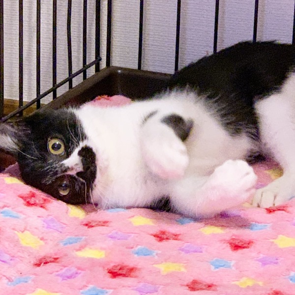 | 特徴(性格など) | ママが鼻の下に墨を綺麗に塗ってくれたようで、立派な髭をお持ちです。 まだ保護して間もないですが毎日の成長が著しく、人間社会の生活に馴染んでくれています。 とにかく活発で遊ぶことが大好きです。 ただし、抱っこはあまり好きではないようです。 そんなポテトくんと一緒に遊んで、家族の一員として迎えてくださるご家族を探しています。 はちみつくんとは兄弟です。 |