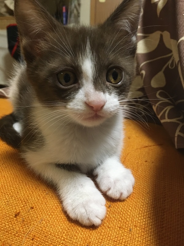| 特徴(性格など) | 白と濃い茶のハチワレです。 好奇心旺盛で、元気な子です。 トイレトレーニングも出来てます。 |