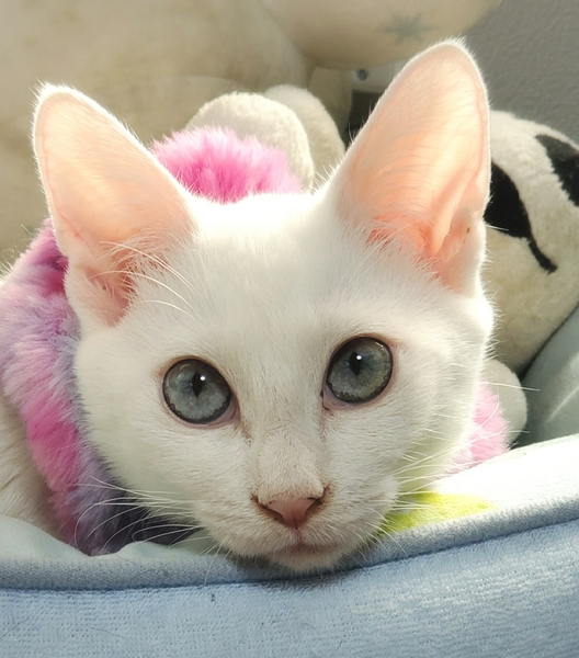 | 特徴(性格など) | 11月22日(日)12:00~16:00(最終申込15:30) ねこざんまい譲渡会に参加予定です! 《会場のご案内はこちら》 https://ameblo.jp/neko3mai/entry-12638485255.html 11:30より、3階会場入口にて受付を開始します。 受付時に入場予定時間が記入された整理券をお配り致しますので、整理券を受け取った方はお時間になりましたら3階会場入口に番号順にお並び下さい。 里親様決定は14時以降となります。 その後、迎え入れ準備の説明等のお時間も頂戴しますので、お時間に余裕を持ってご来場下さい。 ねこざんまい譲渡会は先着順の譲渡ではありません。 11:30より早くいらしてもお待ちいただく場所がございません。 また、近隣にお住まいの方や他階フロアのご利用者様にご迷惑となる場合がございますので、 受付開始時間にあわせてお越しくださいますよう、何卒ご協力お願いいたします。 ※譲渡会ご来場につきまして、事前予約は不要です どうぞご家族みなさまでご来場下さい♪ ★★★ご来場前に必ずご確認下さい★★★ 《里親様へお願いはこちら》 http://www.neko3mai.com/condition/condition.html 《家族募集中猫ちゃん一覧はこちら》 http://www.neko3mai.com/entrycats/entrycats.html ◆ 名 前 ◆ ソランちゃん ◆ 年 齢 ◆ 6ヶ月 ◆ 性 別 ◆ 女の子 ◆性格は?◆ まぶしいくらいの白さと、キレイなブルーの瞳の持ち主です。 人が大好きで、名前を呼ぶと駆け寄って来ます。 とにかく甘えん坊さん♡ 抱っこも大好き♡ 超元気!! 寂しがりやでもあるので、たくさん構って下さるご家庭を希望します。 初めて猫と暮らす方にも扱いやすい子だと思います。 ソランちゃんは目を覆いたくなるほど悲惨な多頭飼育現場よりレスキューしました。 そんなことを微塵にも感じさせないくらい明るい子なのです。 保護されて、新しい猫生がスタートしました。 一緒に遊んで一緒に寝て。 優しく包み込んでくれるお膝。 振り返ればそこに自分の家族がいる。 そして名前を呼ばれ、暖かな手で撫でられる。 そんな当たり前のことがソランちゃんには特別なこと。 そんな特別なことに囲まれて、これからは幸せしか感じられない最高の猫生になりますようにと願っています。 事故や誤飲防止のため、きちんと整理整頓された清潔な空間での生活を希望します。 ペットではなく、共に暮す家族の一員としてお迎えくださるお家を希望しておりますので、お世話してくださるご家族の皆さん、またはご夫婦ご一緒に会いにいらしてくださいね! 先住猫・先住犬や小さなお子様がいらっしゃるご家庭への譲渡は、ご希望に添えない場合がございます。 また脱走や危険防止対策をしていただけないご家庭への譲渡は、大変申し訳ございませんがご遠慮させていただいております。 |