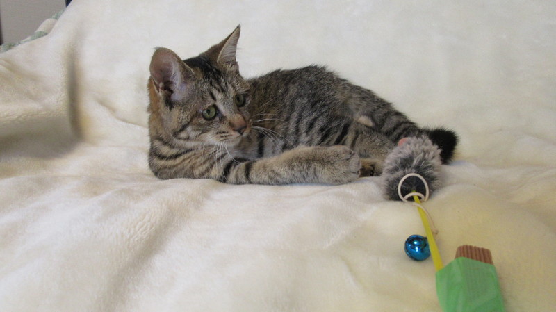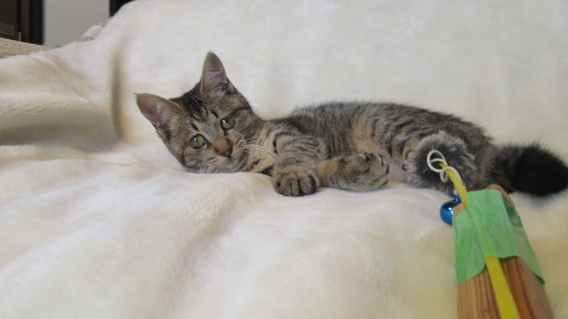| 特徴(性格など) | 通常の同月齢の子に比べてかなり小柄です。その為体重が足りず避妊手術がまだ受けられません。小っちゃいですがパワフルでとても元気です。 人に慣れていて、トイレの躾も出来ています。 |