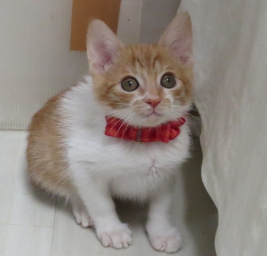 | 特徴(性格など) | お庭でエサをあげて増えていてしまったお宅の猫たちの不妊手術活動をしている中で、兄妹で保護されたうちの1匹です。保護した時はよちよち状態でした。 ラスクくんは、眉毛みたいな顔の模様で、何ともひょうきんな表情の可愛い子です。遊ぶのも大好きで元気一杯。まだまだ小さいので性格はこれから作られていく段階ですが、可愛い性格で、甘えん坊になっていく子だと思います。 優しく接して下さって、充分に愛情を注いで頂ける飼い主さまとのご縁を、心からお待ちしております。 |