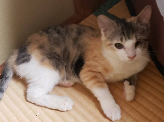 | 特徴(性格など) | ◆スフレちゃん ●月齢の小さな子猫は、以下の条件についてご了承の上で応募をご検討下さい。 ◆高齢者のみのご家族からの子猫のお申し込みはお断りさせて頂きます。 ◆お留守番の少ないご家庭を希望します。 ◆小さなお子様のいるご家庭は状況によりお断りする場合がございます。 〇沖縄県内で保護されました。 〇生後6〜7か月ぐらいの三毛トラハチワレ女子です。 〇尻尾は真っ直ぐです。 〇左目がつぶれていて見えていませんが、生活する上では問題ありません。 〇元気な女の子ですが、少しビビりさんです。 〇抱っこできます。人馴れしてきたら甘えっ子になると思います。 〇同じく里親募集中の「メレンゲ」とはとても仲良しです。 〇元気にすくすく育っています。 〇まだ小さな仔猫のため、お留守番の少ないおうちをお待ちしております。 ○スフレちゃんが出演している動画です。ぜひご覧下さい。 https://youtu.be/VQNA_azMfQo ★ワクチン1回済み、駆虫済み、不妊手術済み。 ★猫エイズ、猫白血病ともに陰性。 ★不妊手術は、発育と体調をみて適宜おこないます。 ★★Zoomアプリを使用して、リモートお見合いを設定することも可能です。まずはお申込みください★★ |