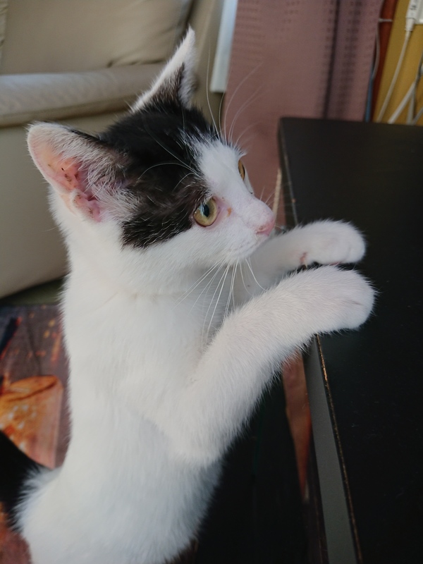 | 特徴(性格など) | パンダのようにまばらな白黒で、とても甘えん坊な、可愛い男の子です。 飼われていたのか、ゲージの中でトイレもできます。人馴れもすごくしています。 |