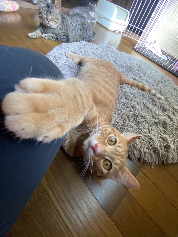 | 特徴(性格など) | 茶トラの男の子です。 他の猫さんたちとも仲良く遊べます。 人も大好きでとてもかわいい子です。 |