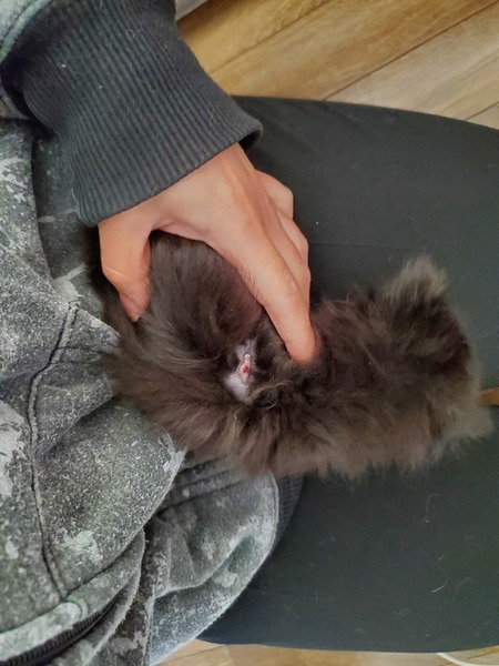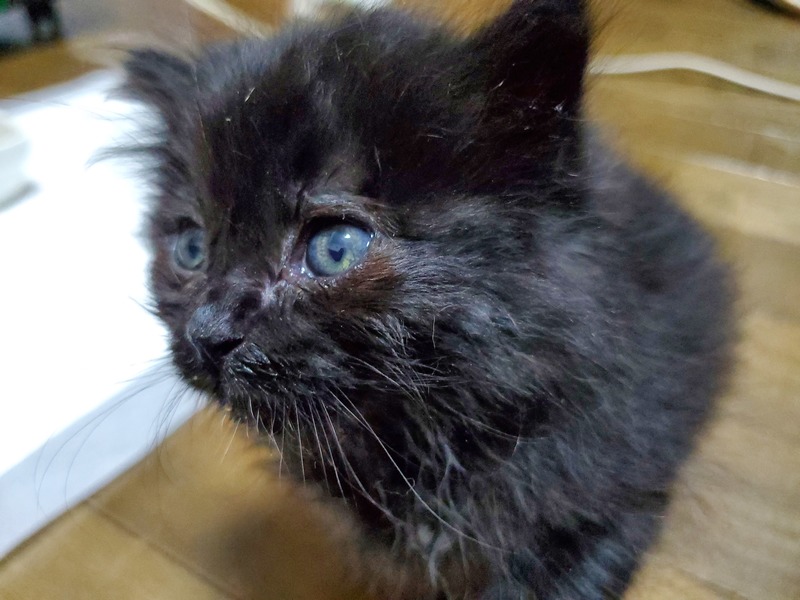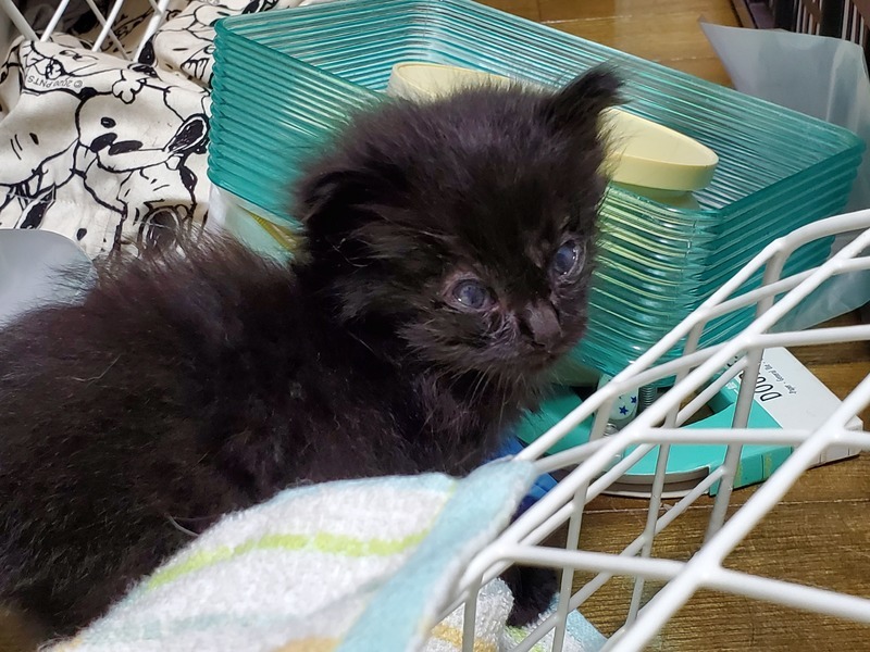 | 特徴(性格など) | 長毛の黒。しっぽ折れなし。 人懐っこい。 背中に大きな傷跡があります。 トイトレ中。 |