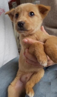 | 特徴(性格など) | 仮名:陽太(ひなた) とっても人懐っこいです。 一緒に保護された妹の陽菜(ひな)とも仲良しで、元気に遊んでいます。 大三島の野犬の子ですが、親が人馴れしているのであきれるほど(笑)人懐っこく警戒心がありません。 6種ワクチン済み ノミダニ駆除済み 健康診断済み |