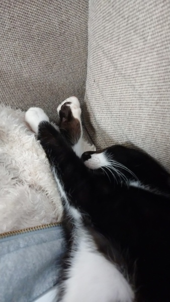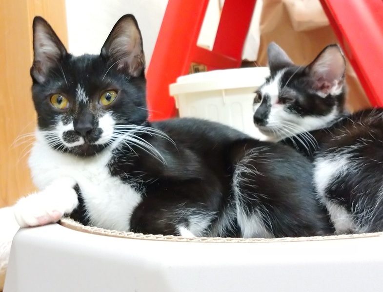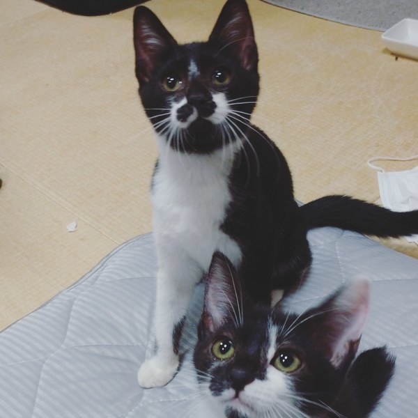 | 特徴(性格など) | 黒白ヒゲ柄で、しっぽは長いです。 黒がとても黒くキレイです。 少し臆病な性格ですが、慣れると人にくっつきたいらしく甘えてきます。 ゴロゴロスリスリとてもかわいいです! 半月ほど幼い他の兄弟と一緒に保護しましたので、一緒に遊んで楽しそうにしています。 力の弱い子には手加減して上手に遊んでくれる優しい子猫です。 大人の猫とも上手な距離感で接して仲良くなります。 ムチャなことはしない性格です。 |