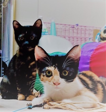 | 特徴(性格など) | ビビリな兄妹でしたが、今では抱っこもナデナデもたくさんさせてくれます^^ 一度慣れたら、お膝が大渋滞!な甘えっ子達になりました。 仮名 【シャッテ】サビ柄で手の先が手袋のようになってます。 控えめな性格だけど、じゃらしは誰よりも好きです^^ 【ミモ】 三毛柄。尻尾の先っぽだけ白いです。 最初は目が三角になるほど非常に怖がっていましたが、意外と早く馴れて甘えるようになりました。食いしんぼ! |