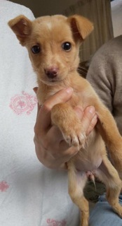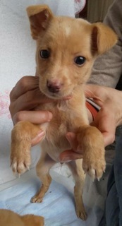 | 特徴(性格など) | 仮名:陽菜(ひな) 陽太(ひなた)と兄妹で、そっくりですが額にちょっと白い毛があるのが陽菜です。 とっても人懐っこいです。 一緒に保護された兄の陽太(ひなた)とも仲良しで、元気に遊んでいます。 大三島の野犬の子ですが、親が人馴れしているのであきれるほど(笑)人懐っこく警戒心がありません。 6種ワクチン済み ノミダニ駆除済み 健康診断済み |